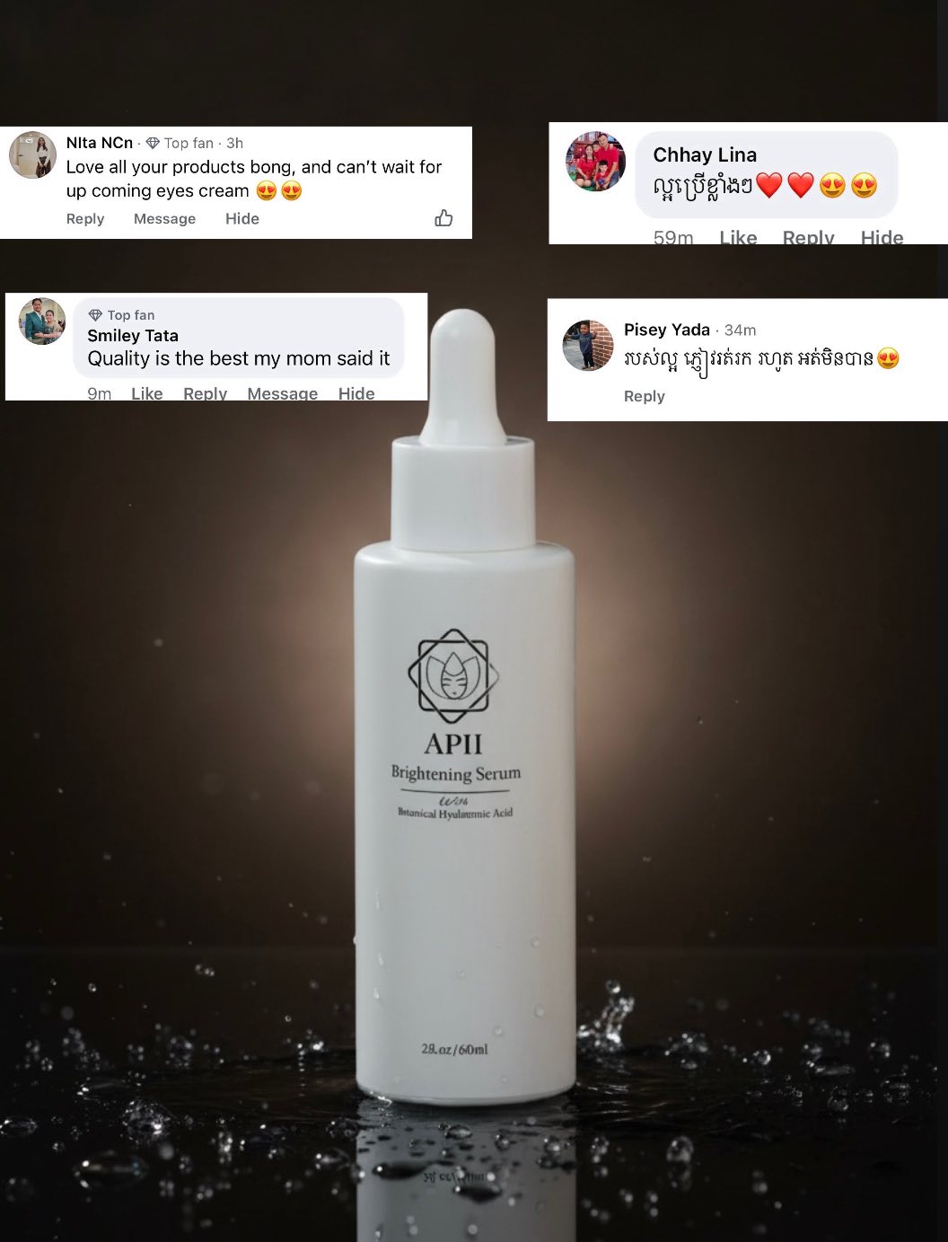 Brightening & Glow skin Apii Brightening Serum helps get rid of the dead skin cells and reduce scars, hyperpigmentation and dark spots. It also restore the damage skin as well as leave your skin clearer complexion and smoother skin. With our key ingredient organic Schisandra helps repair UV damage to brighten and rejuvenate skin's complexion.